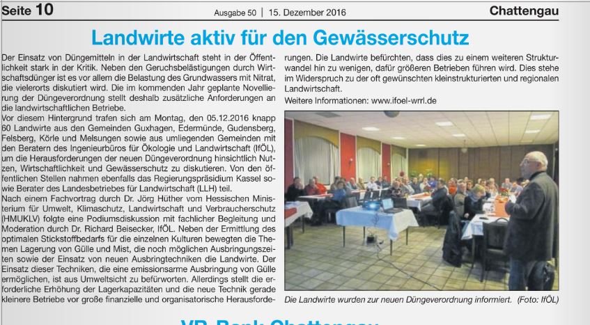 Artikel im Chattengau Kurier, Ausgabe 50, 15.12.2016 (S.10) "Landwirte aktiv für den Gewässerschutz"